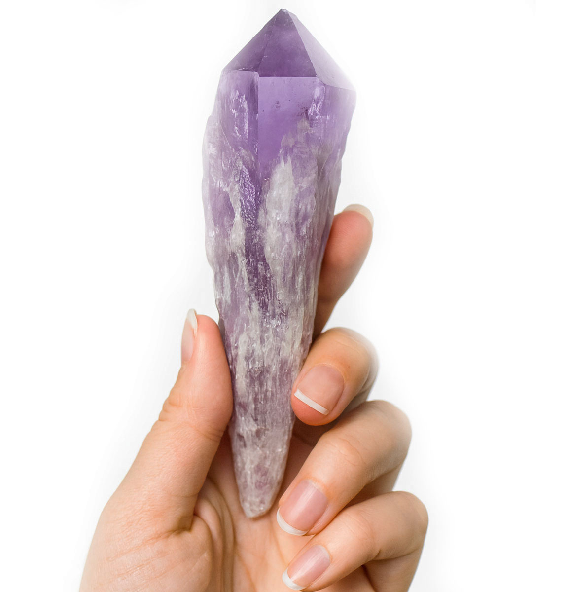 Με το χαρακτηριστικό μωβ χρώμα και τη φυσική κρυσταλλική αιχμή του, λειτουργεί ως ενεργειακός πομπός που κατευθύνει την ενέργεια προς τα πάνω, φέρνοντας καθαρότητα και πνευματική σύνδεση.