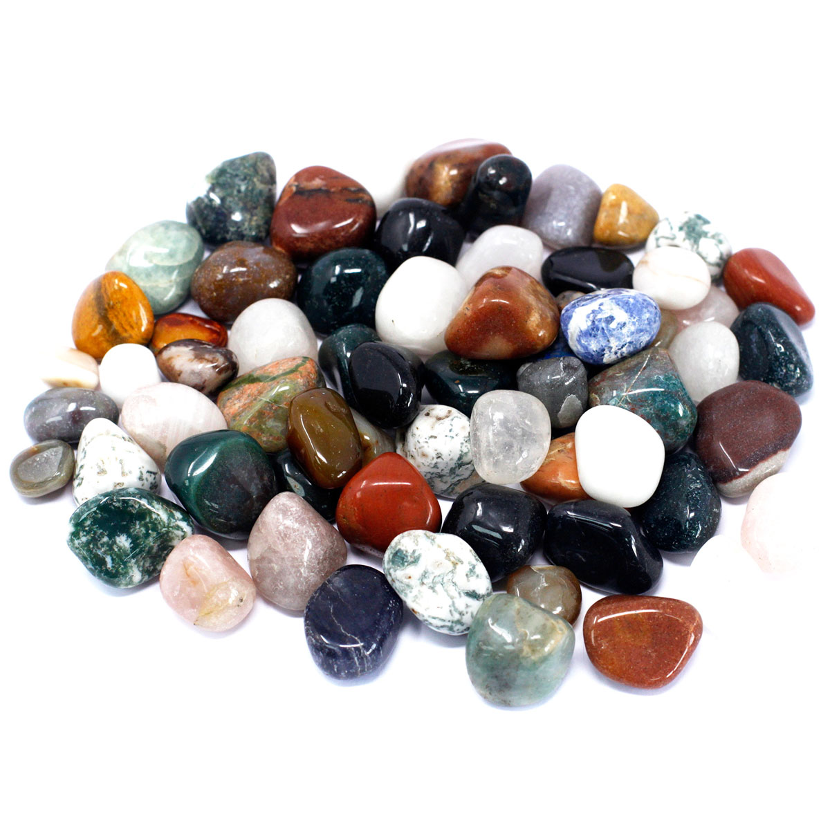Αυτό το εντυπωσιακό μείγμα φυσικών ημιπολύτιμων λίθων προέρχεται από την πλούσια γη της Ινδίας και αποτελεί μια εξαιρετική συλλογή από όμορφα, πολύχρωμα πετράδια. Κάθε λίθος κουβαλά τις δικές του δονήσεις και ενεργειακές ποιότητες, γι’ αυτό και αποτελεί μία από τις πιο ευέλικτες και χρήσιμες επιλογές για καταστήματα, συλλέκτες, δημιουργούς και όσους εργάζονται με ενέργειες.