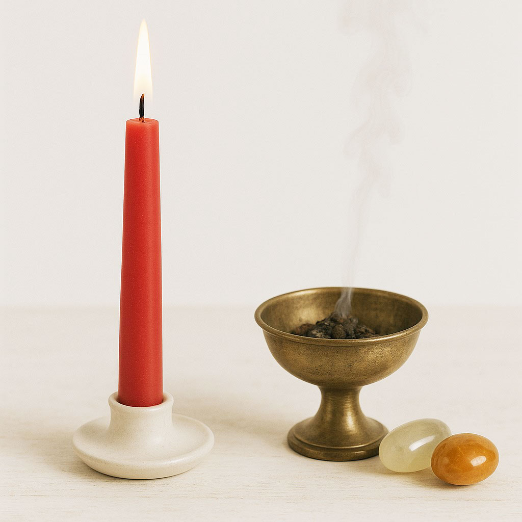 Κάθε γητειά έρχεται με όλα όσα χρειάζεστε - κερί, λίθο, λιβάνι και καθοδήγηση βήμα προς βήμα για την ολοκλήρωση της ευχής.