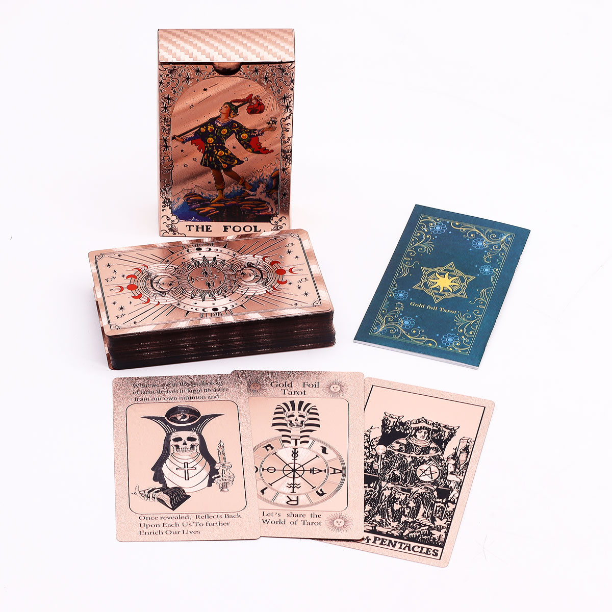 Το Rose Gold Foil Tarot – Moon Phase είναι ένα πολυτελές σετ 78 καρτών που συνδυάζει την κλασική σοφία της Ταρώ με την αιθέρια λάμψη του Ροζ-Χρυσή Χρυσοτυπία. Κάθε κάρτα παιχνιδίζει με το φως, δημιουργώντας αντανακλάσεις που θυμίζουν σεληνόφως, ενώ το moon phase θέμα προσθέτει μια βαθιά, μυστικιστική διάσταση στην εμπειρία ανάγνωσης.