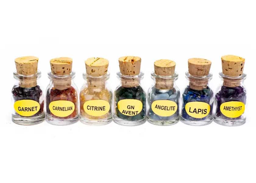 Σετ 7 Μπουκαλάκια με Ημιπολύτιμους Λίθους – Ισορροπία Τσάκρα