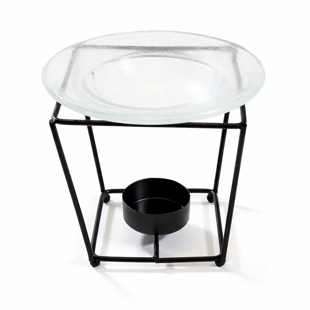 Τετράγωνος Μεταλλικός Καυστήρας Αιθέριων Ελαίων με Γυάλινο Πιάτο 12cm